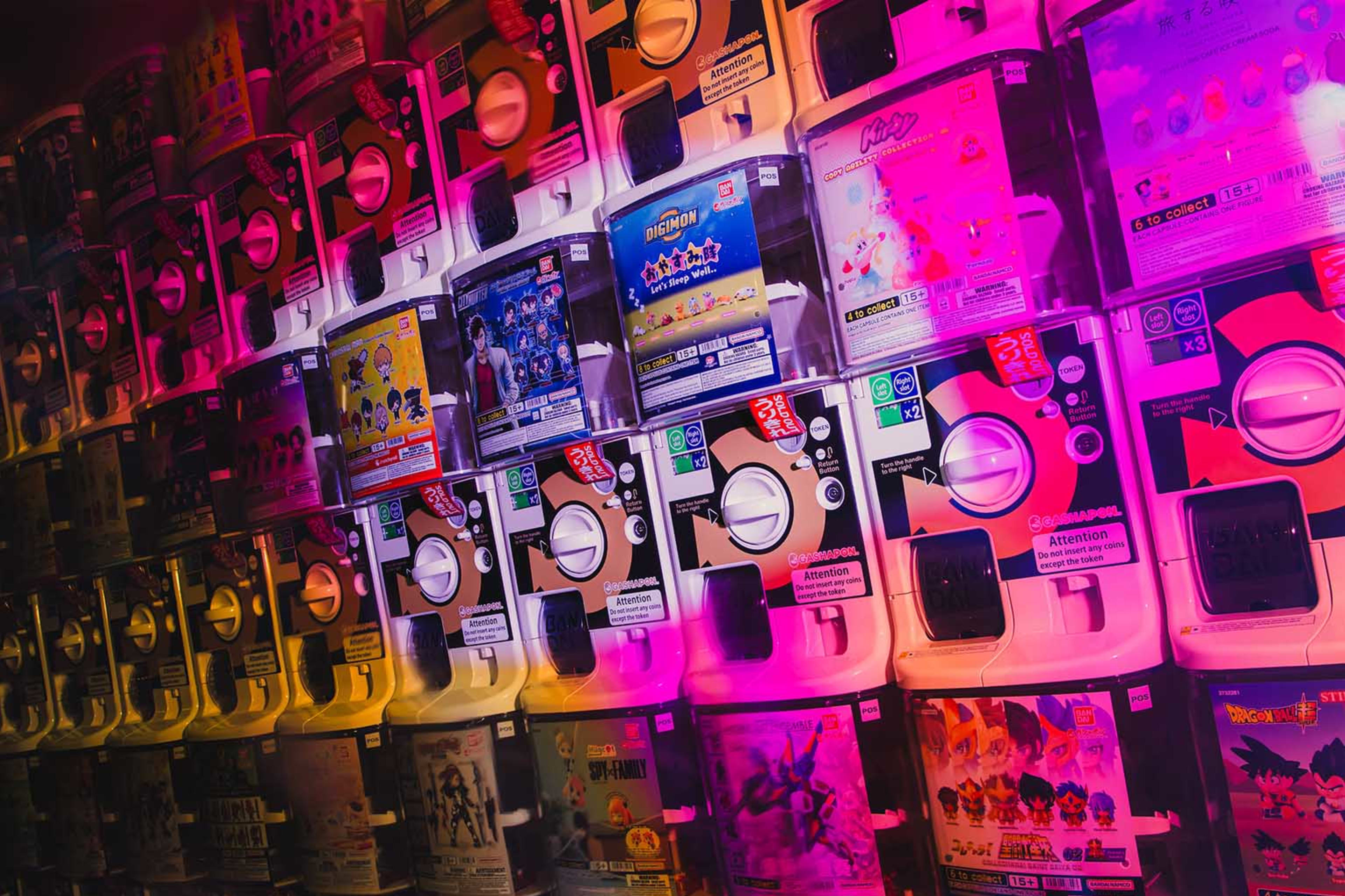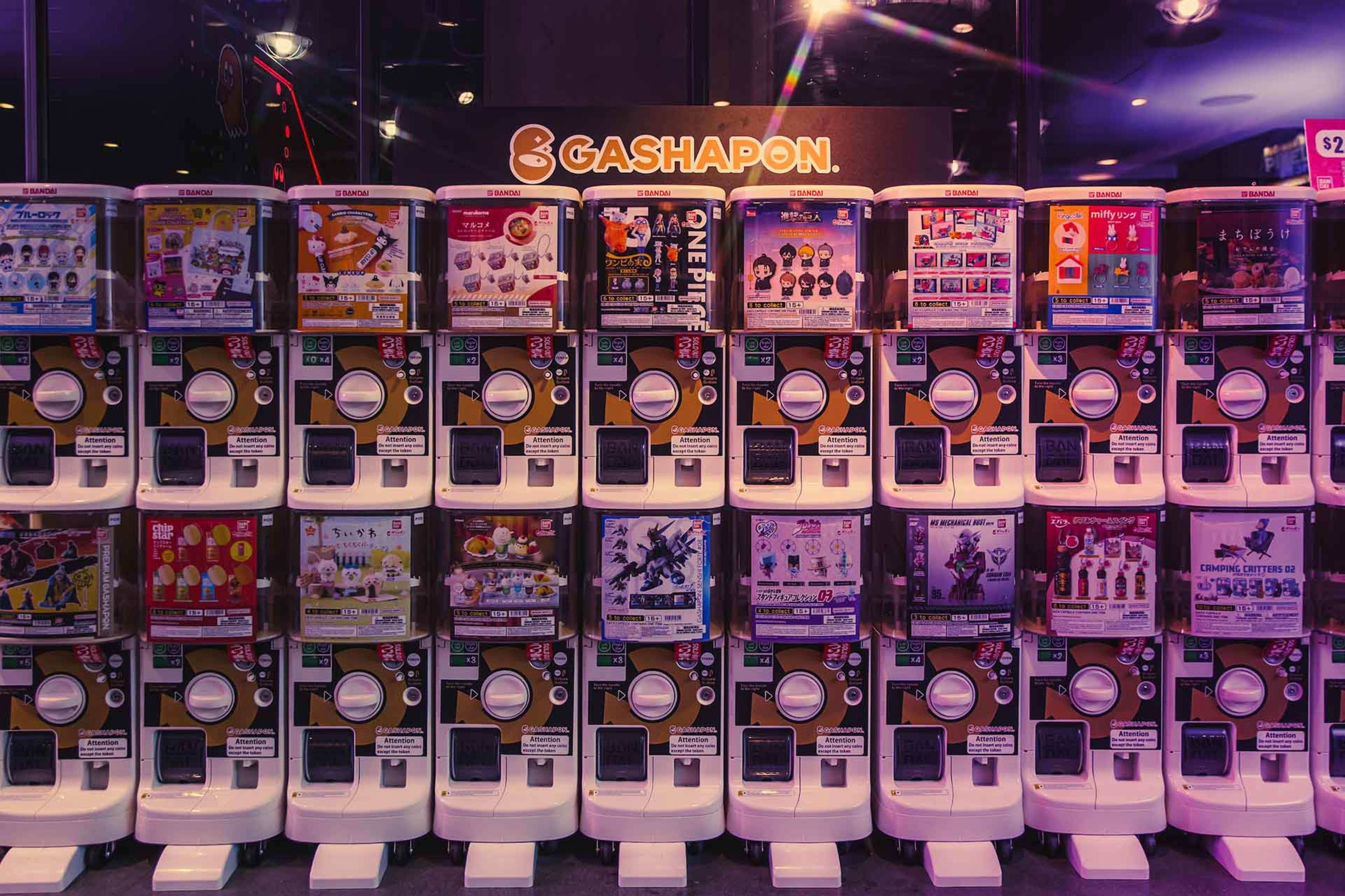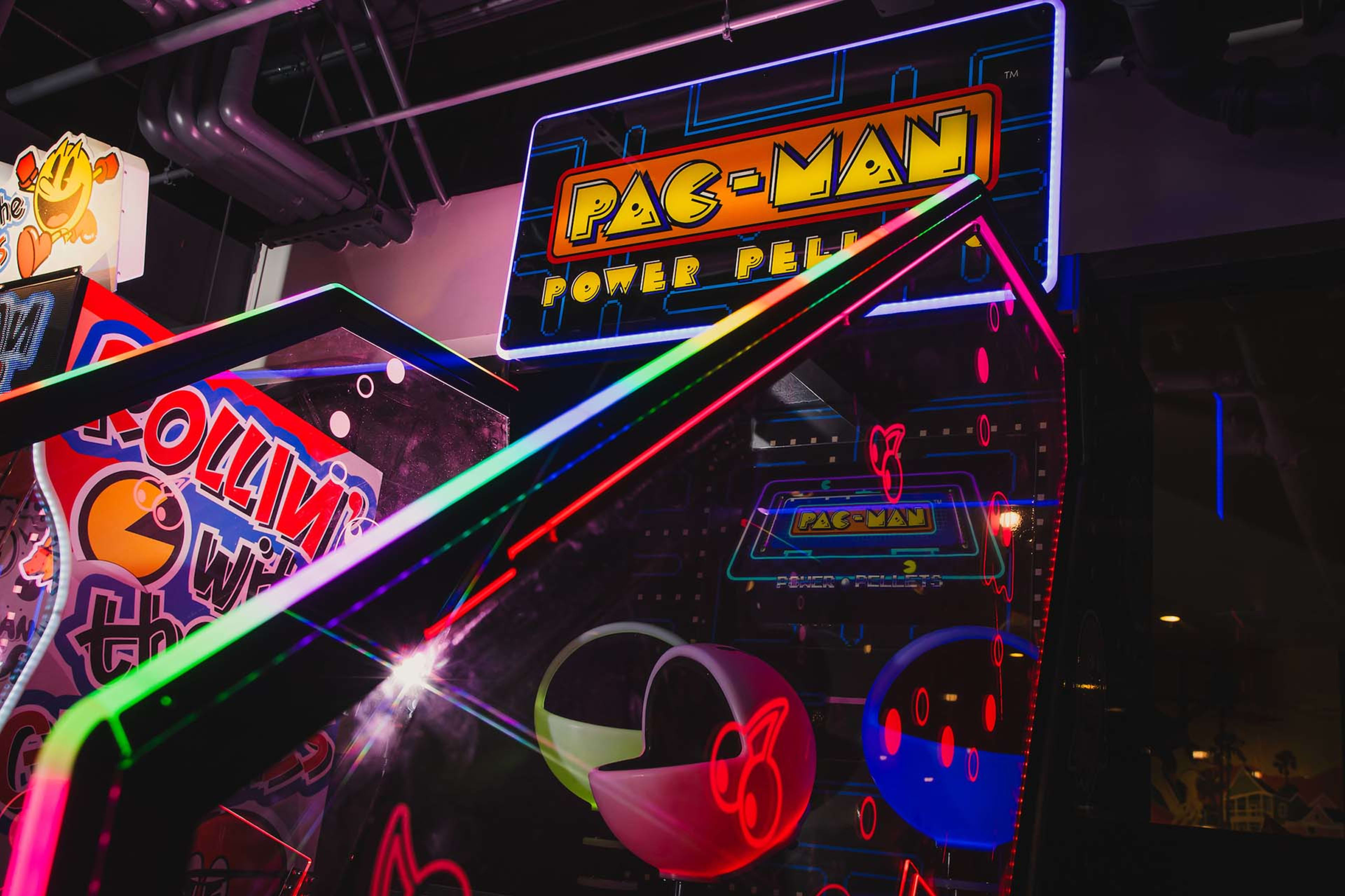 - PAC-MAN themed arcade games, soccer-themed games, and an dazzling array of Gashapon® collectable toy machines