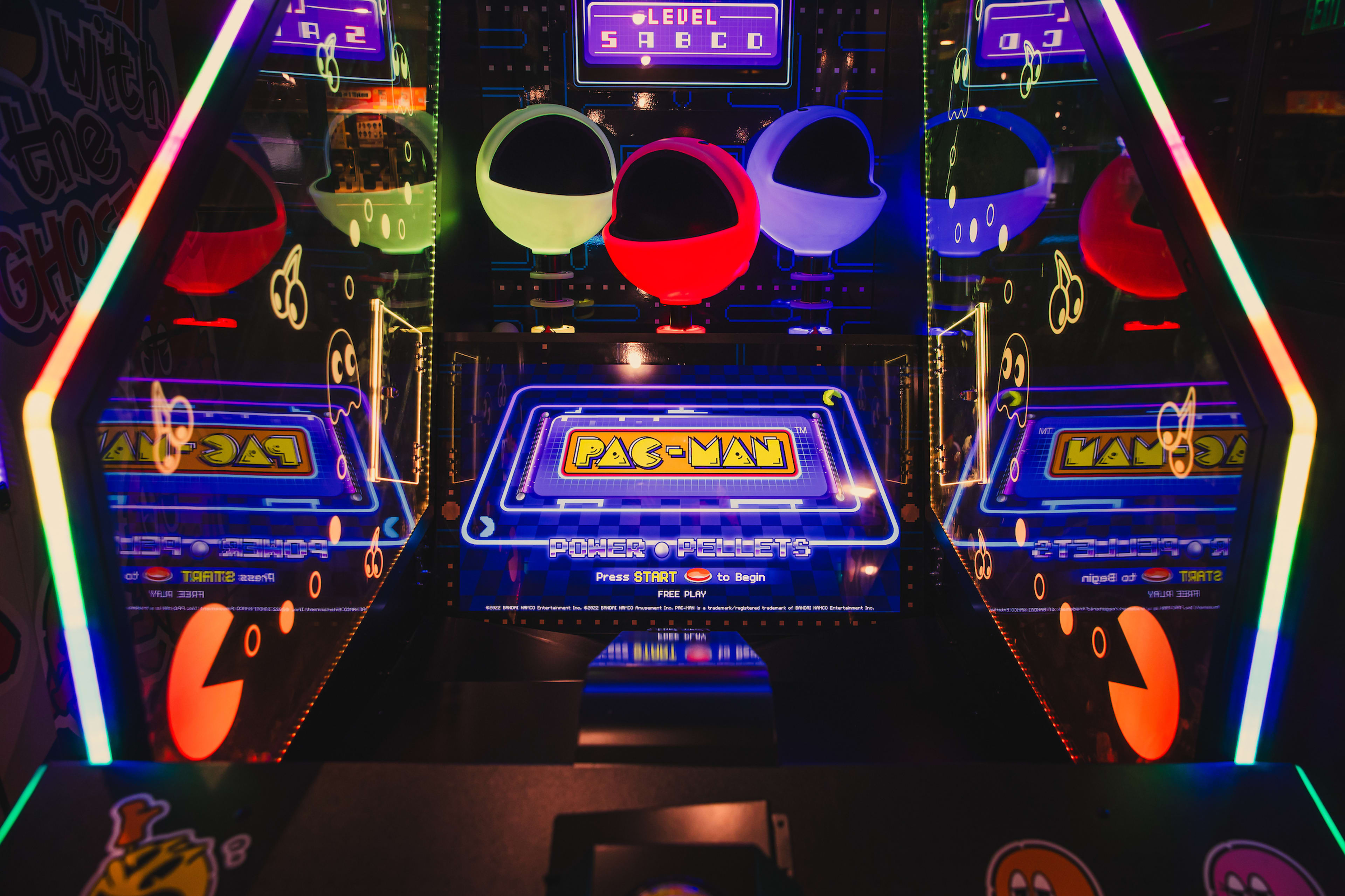 Level Up by Bandai Namco is a new arcade and events destination at BMO Stadium. Located on the second level of The Fields LA food hall, Level Up is an interactive arcade and events space featuring an assortment of PAC-MAN themed arcade games, soccer-themed games and Gashapon® collectible toy machines.