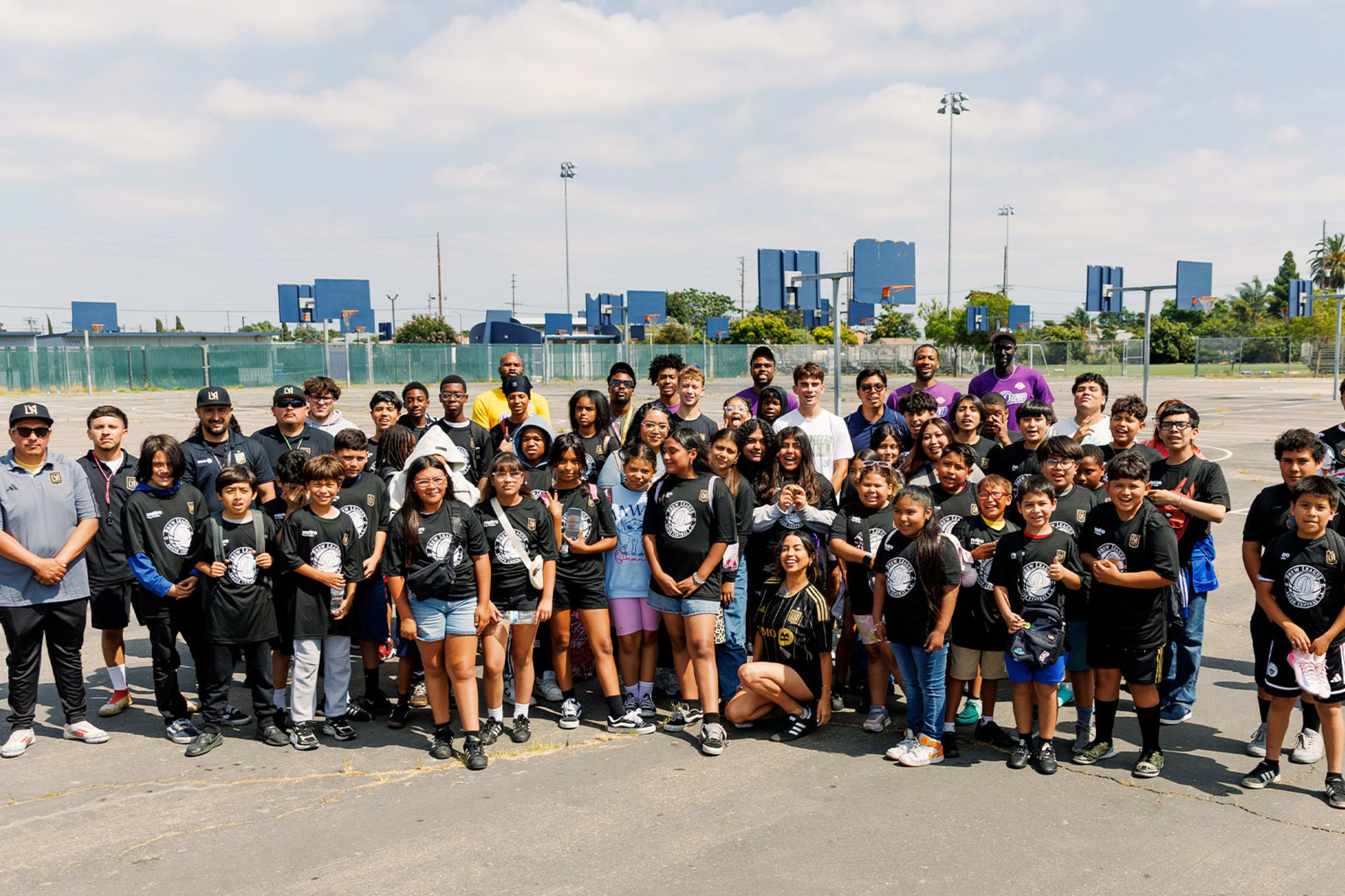 More than 200 LAUSD students engaged in the Beyond the Bell's summer programming participated in two dynamic multi-sport clinics hosted at Drew and Edwin Markham Middle Schools. Presented by Metro by T-Mobile, the clinics featured afternoon soccer and basketball drill sessions led by the Drew League and LA Active Sports. LAFC players Maxime Chanot, Nathan Ordaz, Carlos Díaz, and Tommy Mihalić joined participants as they rotated through different activities to offer guidance and encouragement.