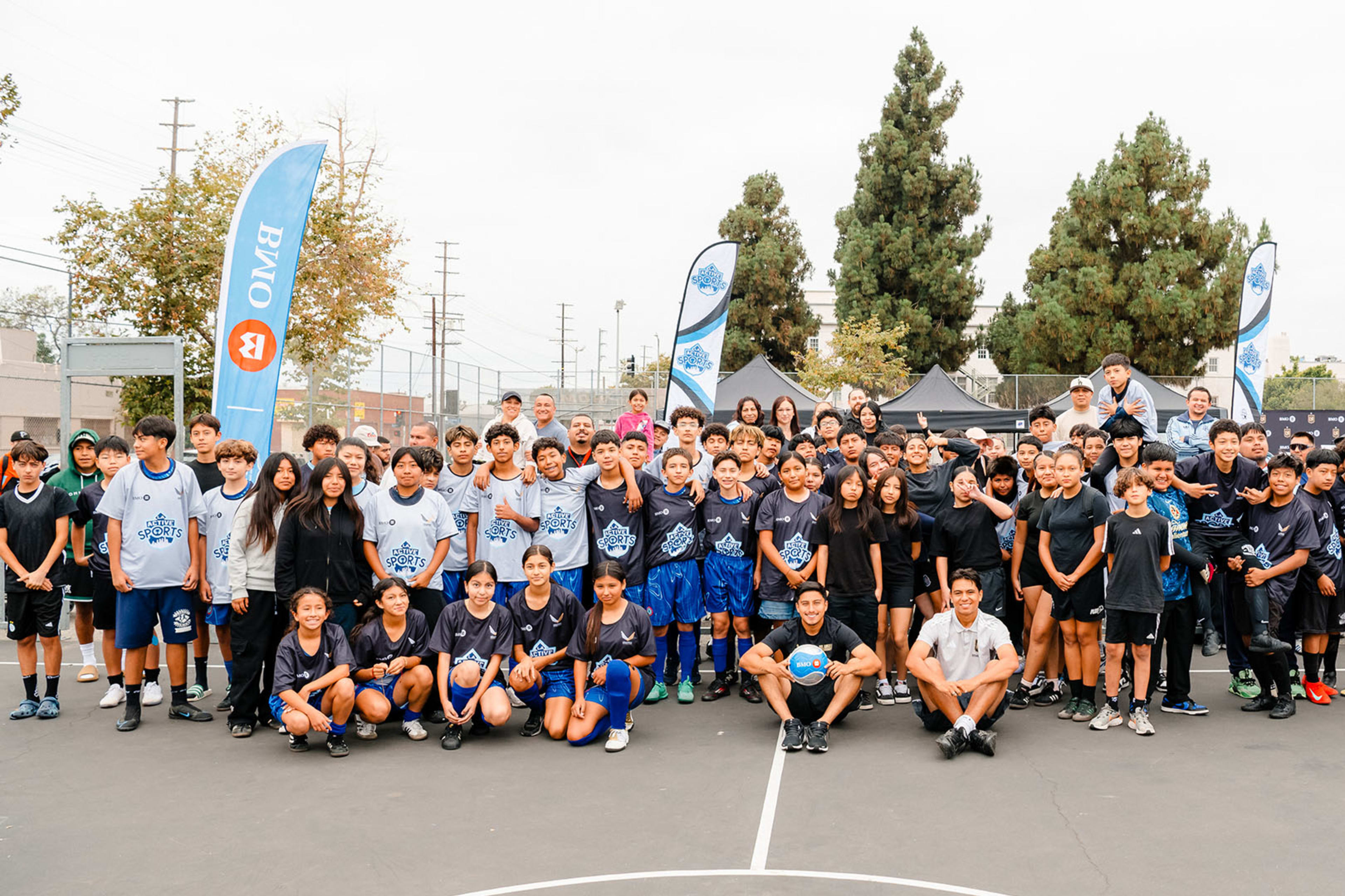 LAFC and BMO partnered to support LA Active Sport by hosting a futsal tournament for over 150 students at John Adams Middle School. The event included player appearances by Adam Saldaña, Adrian Wibowo, and Maxime Chanot, who helped award medals to the young athletes and pass out Melissa’s Produce snacks. Big thanks to BMO for providing jerseys, soccer balls, giveaways, lunches, and their ongoing support of the program.