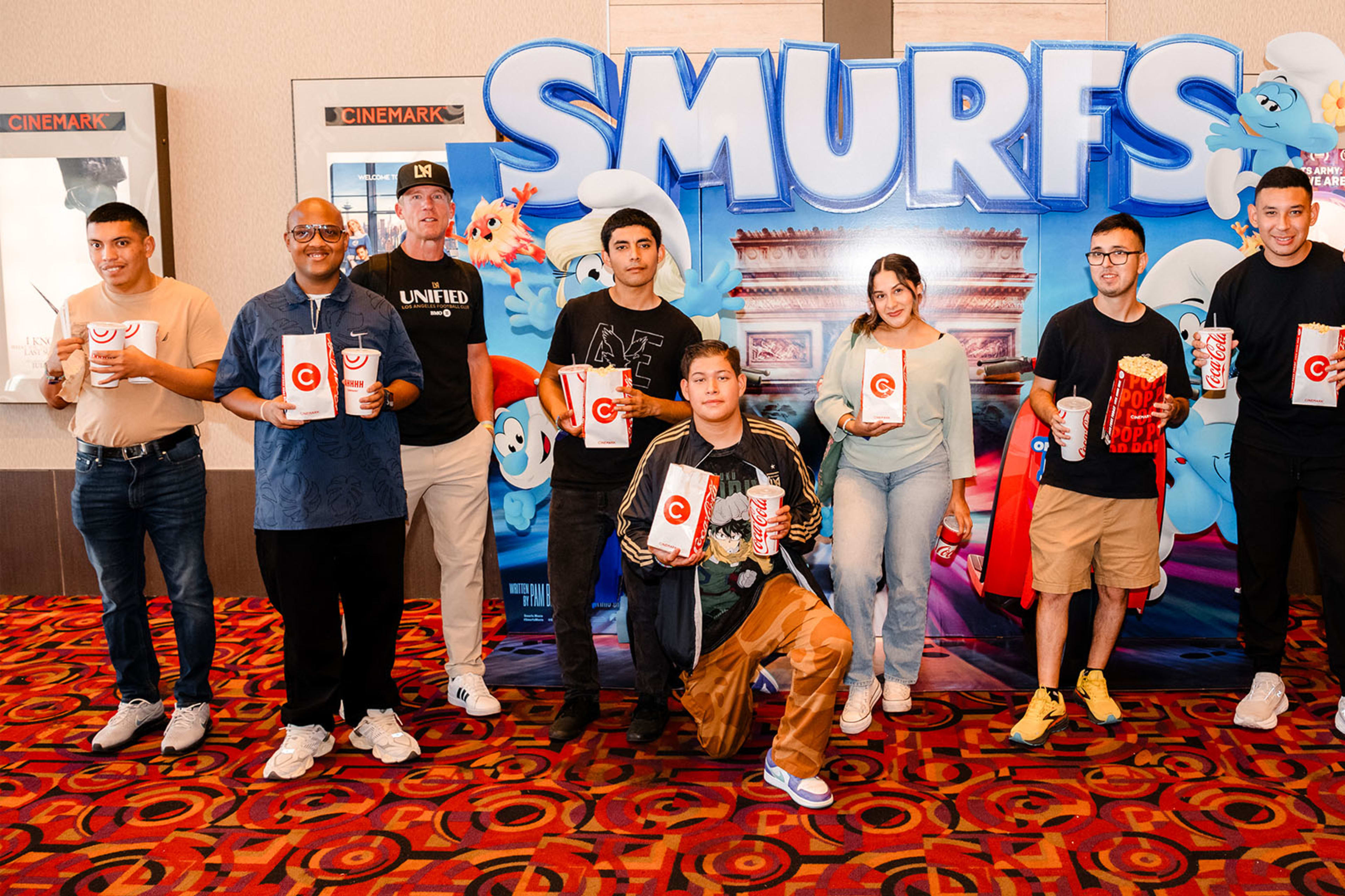 We welcomed the FC Dallas Unified team to Los Angeles for a weekend of connection and competition, starting with a beach night at Dockweiler State Beach. After the first team’s match, the Unified squads took the pitch to play in front of fans. The weekend ended with a private pre-screening of The Smurfs Movie for the LAFC United team, friends, and family.